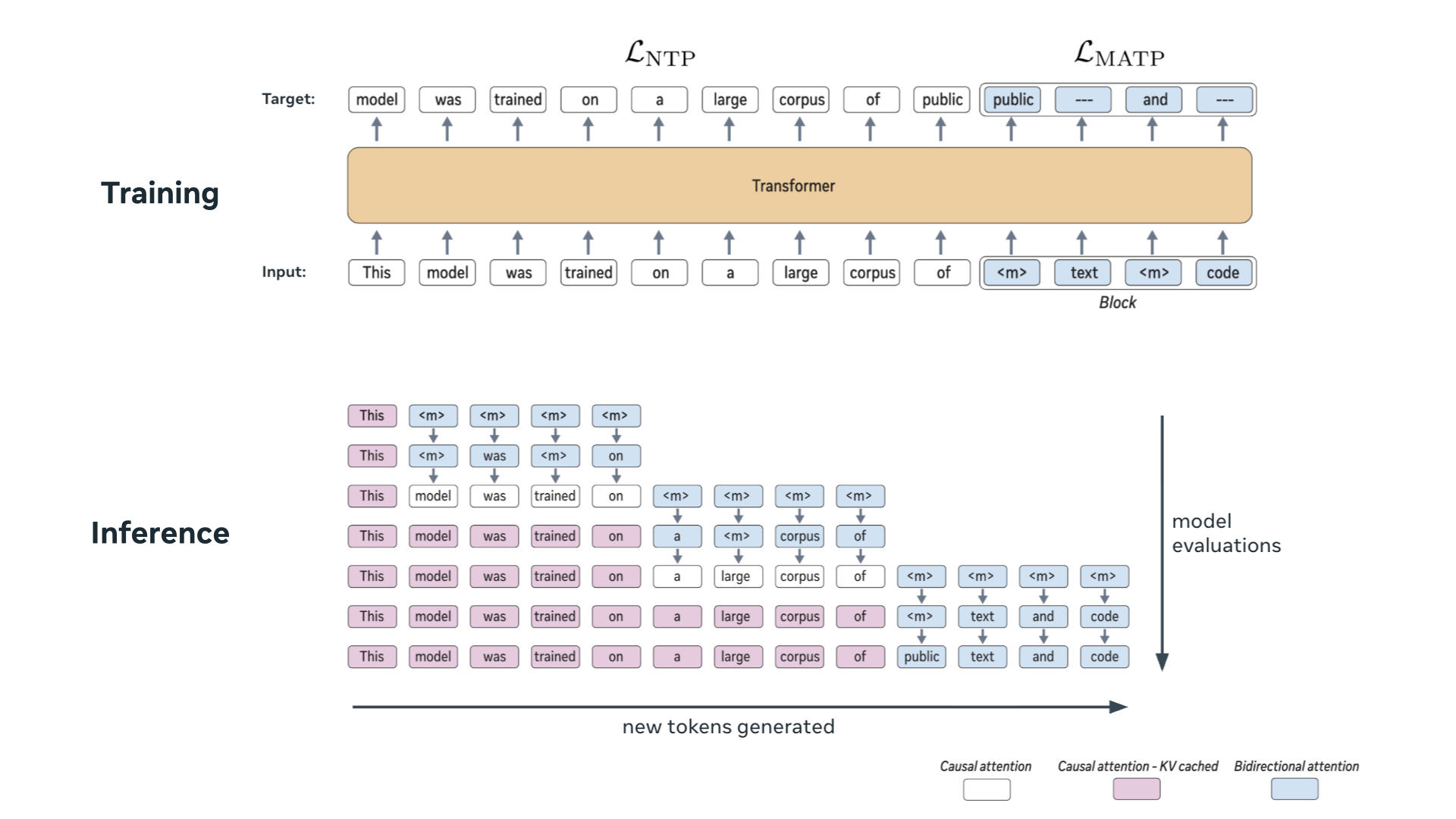 Autoregressive next token prediction language models offer powerful capabilities but face significant challenges in practical deployment due to the high computational and memory costs of inference, particularly during the decoding stage. We introduce Set Block Decoding (SBD), a simple and flexible paradigm that accelerates generation by integrating standard next token prediction (NTP) and masked token prediction (MATP) within a single architecture. SBD allows the model to sample multiple, not necessarily consecutive, future tokens in parallel, a key distinction from previous acceleration methods. This flexibility allows the use of advanced solvers from the discrete diffusion literature, offering significant speedups without sacrificing accuracy. SBD requires no architectural changes or extra training hyperparameters, maintains compatibility with exact KV-caching, and can be implemented by fine-tuning existing next token prediction models. By fine-tuning Llama-3.1 8B and Qwen-3 8B, we demonstrate that SBD enables a 3-5x reduction in the number of forward passes required for generation while achieving same performance as equivalent NTP training.